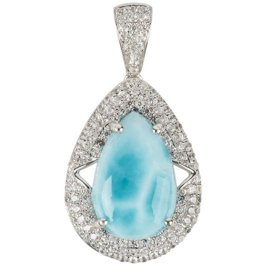 925 Sterling Silver Larimar and White Natural Zircon Gemstone Pendants