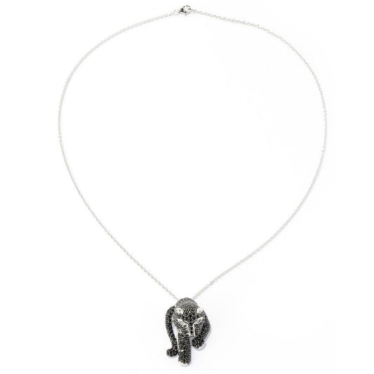 925 Sterling Silver Black Spinel,White Natural Zircon Gemstone " Leopard " Pendants