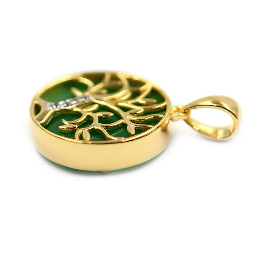18k Yellow Gold Plating Over Sterling Silver, Dyed Green Jade and Diamond Gemstone " Key "Pendant