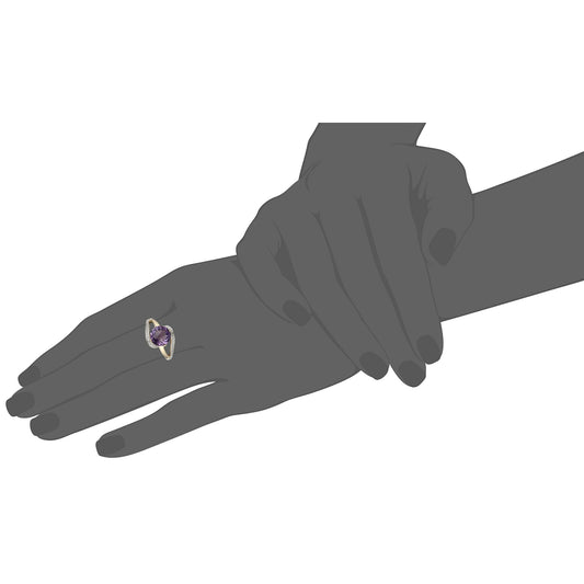 10k Yellow Gold African Amethyst and Diamond Accented Solitaire Ring