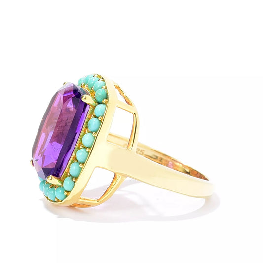 18k Yellow Gold Plated Over Sterling Silver African Amethyst, Campitos Turquoise Gemstone Classic Ring