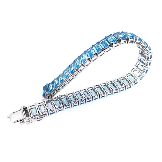 925 Sterling Silver Milky Aquamarine Gemstone Tennis Bracelet