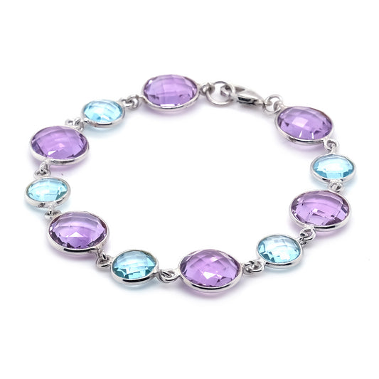 Pinctore Sterling Silver Sky Blue Topaz And Brazilian Amethyst Gemstone Bracelets
