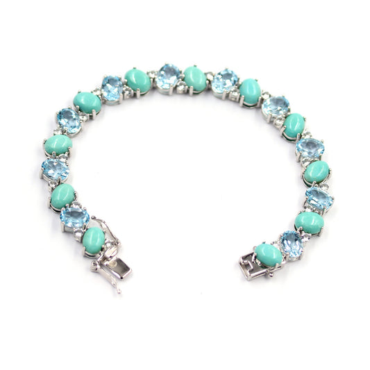 925 Sterling Silver Campitos Turquoise, Swiss Blue Topaz Gemstone Bracelets
