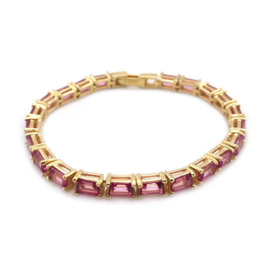 Yellow Gold Over Sterling Silver Pink Topaz Gemstone Tennis Bracelets For Women's And Girls