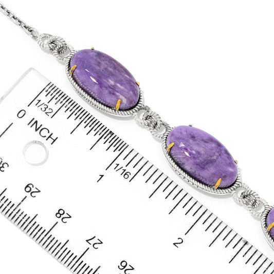 925 Sterling Silver Charoite Gemstone Toggle Bracelets