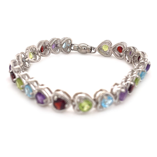 925 Sterling Silver Multi Gemstone Gemstone Tennis Bracelet