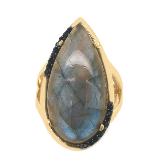 18K Yellow Gold Plated Over Sterling Silver Labradorite Gemstone Solitaire Boho Ring