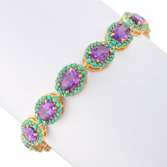 Yellow Gold Plated Over Sterling Silver African Amethyst And Sky Blue Topaz Gemstone Bracelets