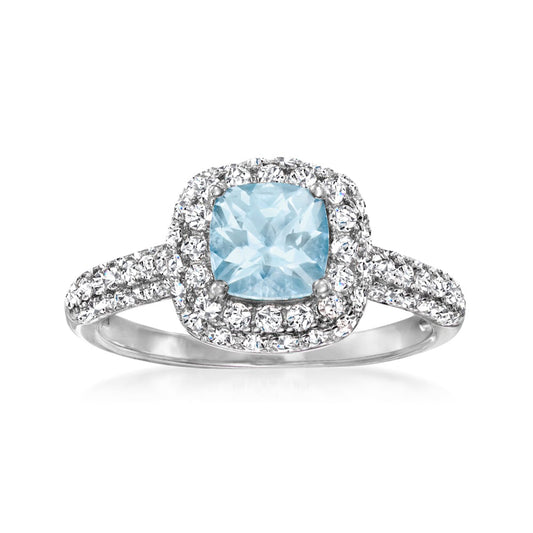 Pinctore Sterling Silver Aquamarine & Created White Sapphire Ring