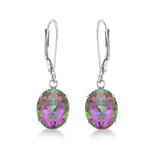 Sterling Silver 10x8 Oval Genuine Birthstone Lever back Dangle Earrings