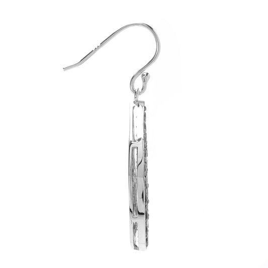 925 Sterling Silver Black Spinel, White Cz Dangle Earrings