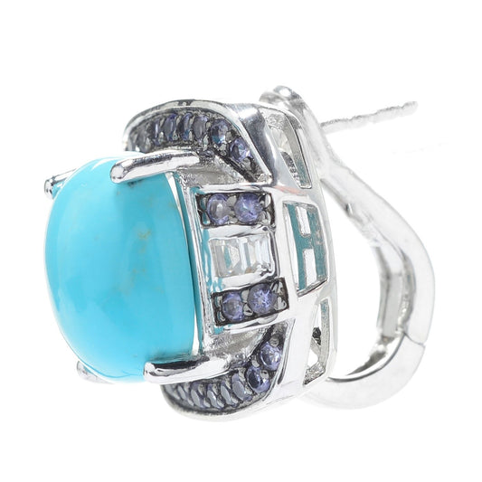 925 Sterling Silver Kingman Turquoise,White Topaz,Iolite Earrings