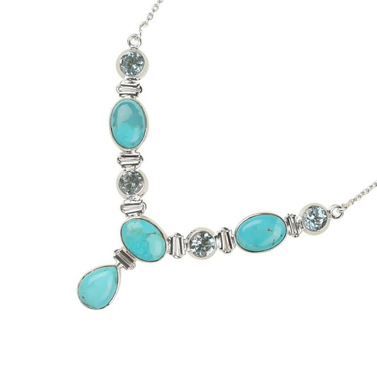 925 Sterling Silver Blue Mohave Turquoise & Blue Topaz Gemstone Necklace For Women's And Girls