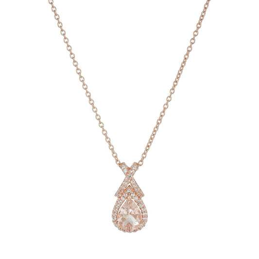 Rose Gold-plated Silver Morganite & White Topaz Pendant Necklace, 18" - peach
