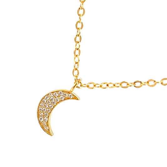 18k Yellow Gold Over Sterling Silver White Zircon Gemstone " Half Moon " Pendant Necklaces