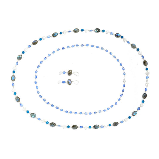925 Sterling Silver Rainbow Moonstone 2 Strand Necklace