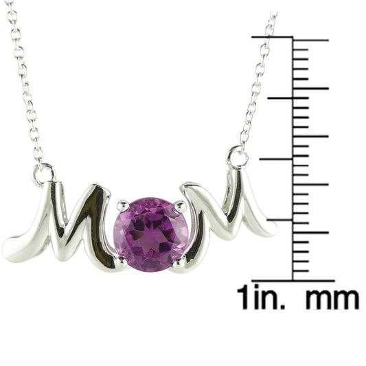 925 Sterling Silver Pink Topaz Gemstone " MoM " Necklace