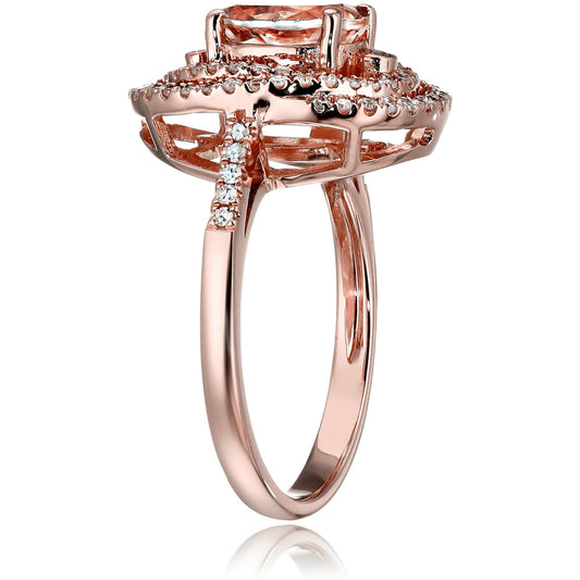 10k Rose Gold Morganite and Diamond Double Swirl Halo Oval Engagement Ring (1/3cttw, H-I Color, I1-I2 Clarity),