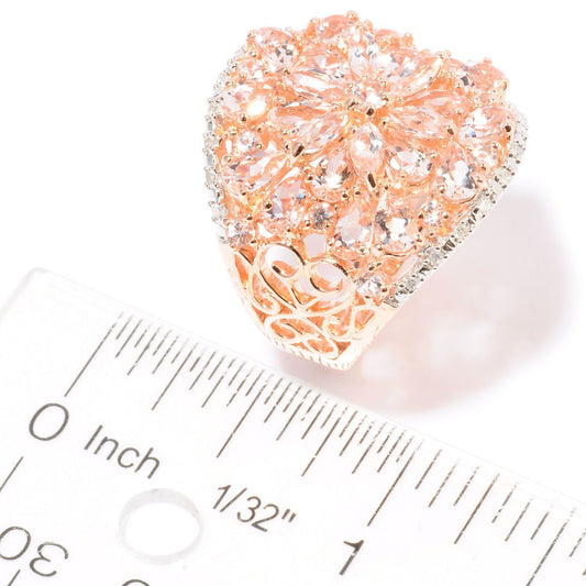 Rose Vermeil Over Sterling Silver Diamond, Morganite Gemstone Cluster Rings