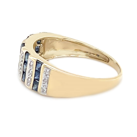 14Kt Yellow Gold Blue Sapphire and Diamond Band Rings