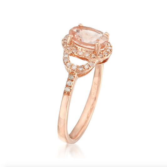 14kt Rose Gold Morganite and Diamond Gemstone Solitaire Ring