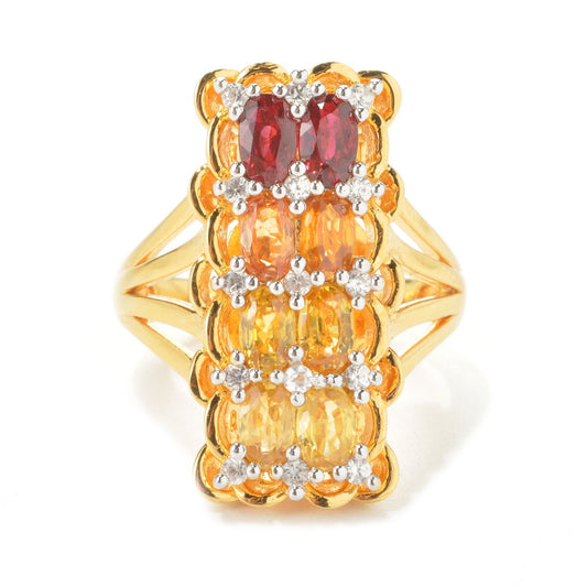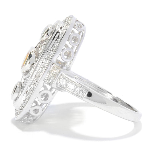 925 Sterling Silver Shaded Orange Sapphire and White Natural Zircon Cocktail Rings