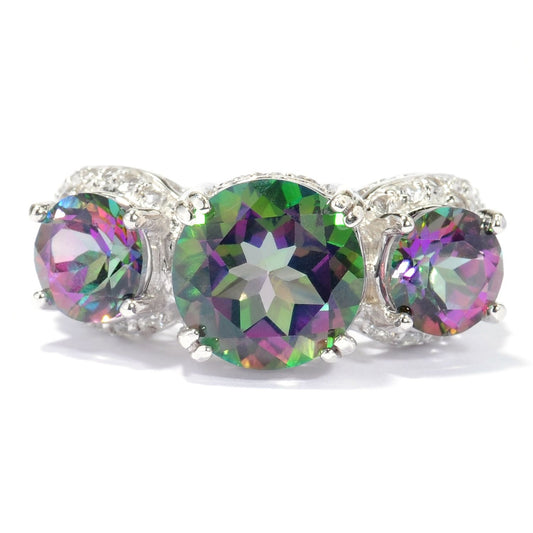 925 Sterling Silver Chrome Diopside, Mystic Topaz and White Topaz 3- Stone Ring