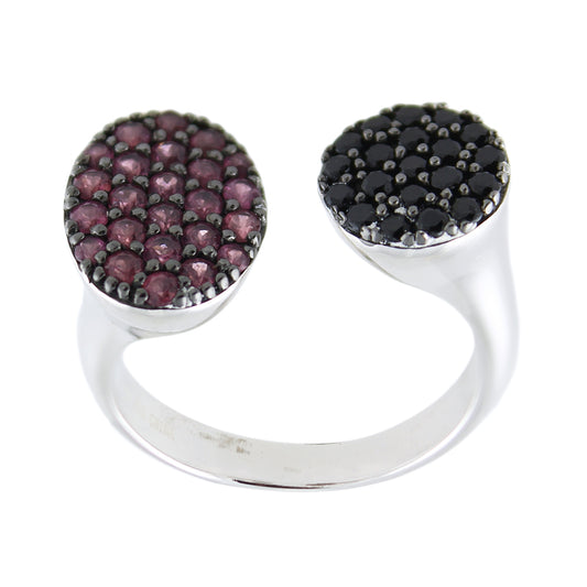 925 Sterling Silver Black Spinel, Rhodolite Garnet Ring