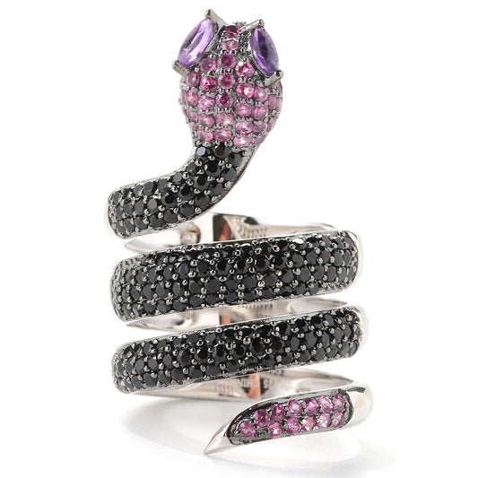 Sterling Silver 2.41Ctw Black Spinel and Multi Gem Snake Wrap Ring