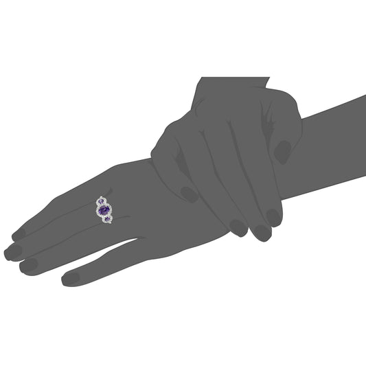 925 Sterling Silver African Amethyst, Created White Sapphire Ring