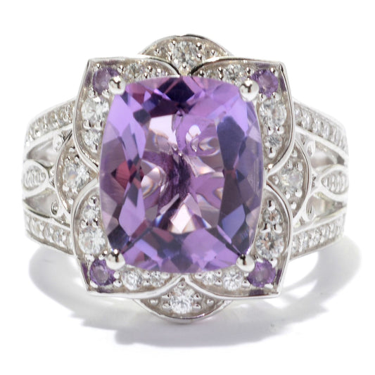 925 Sterling Silver Pink Amethyst and White Topaz Cocktails Ring