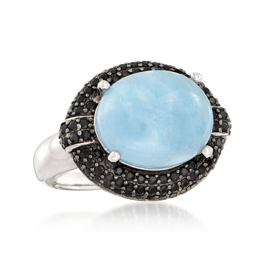 925 Sterling Silver Milky Aquamarine and Black Spinel Gemstone Cocktail Ring