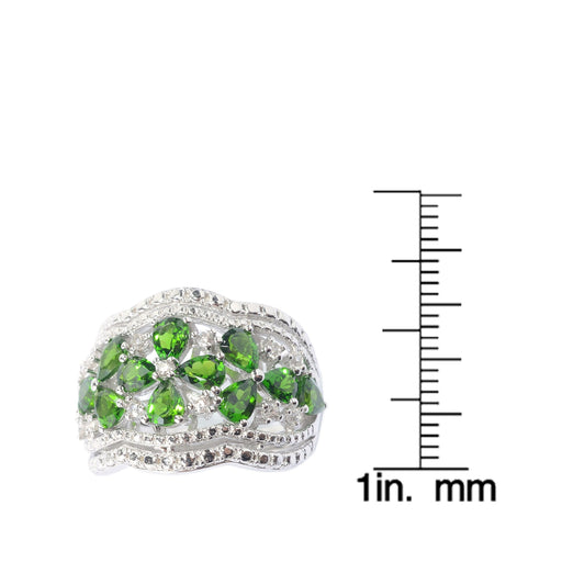 Chrome Diopside & White Zircon Floral Scalloped Wide Band Ring