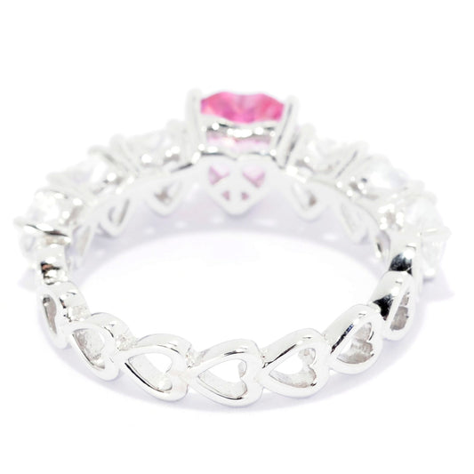 Pinctore Sterling Silver 2.40ctw Bahaman Pink & White Topaz Heart Band Rings