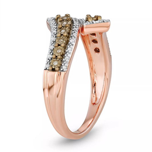 Stunning 1/5 Ct Champagne and White Diamond Bypass Ring in 925 Silver – Ideal Gift for Women"