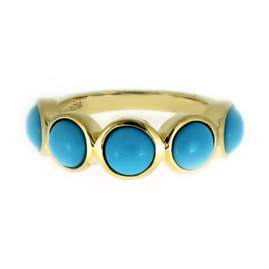 18k Yellow Gold Plated Over Sterling Silver Sleeping Beauty Turquoise 5-Stone Ring