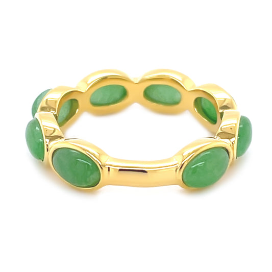 18k Yellow Gold Plated Over Sterling Silver Dyed Green Jade Gemstone Band Ring
