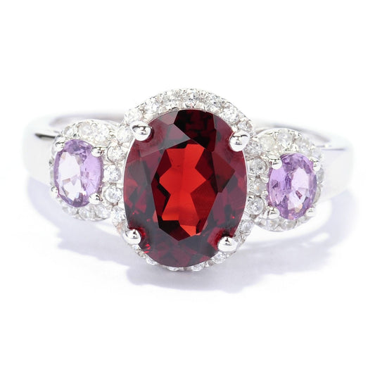Pinctore Sterling Silver 8.14ctw Oval Pink Amethyst & Rhodolite Ring
