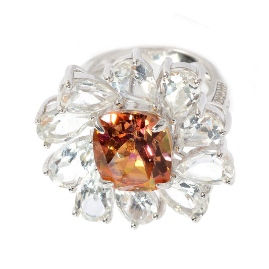 925 Sterling Silver Sunset Topaz And White Topaz Gemstone Cocktail Ring