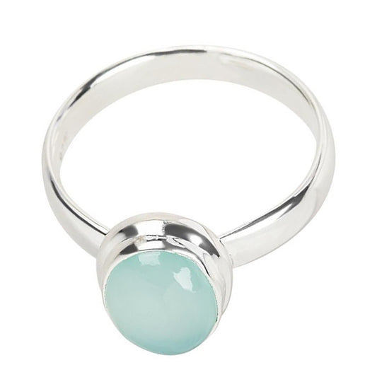 Sterling Silver Aqua Chalcedony Gemstone Solitaire Rings