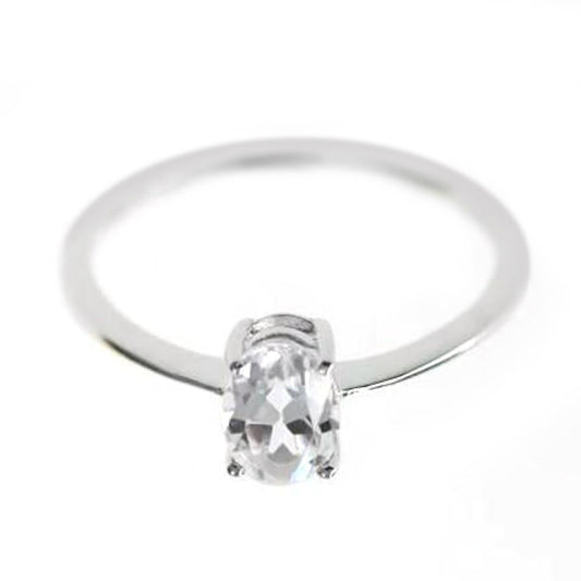 925 Sterling Silver White Topaz Gemstone Solitaire Ring