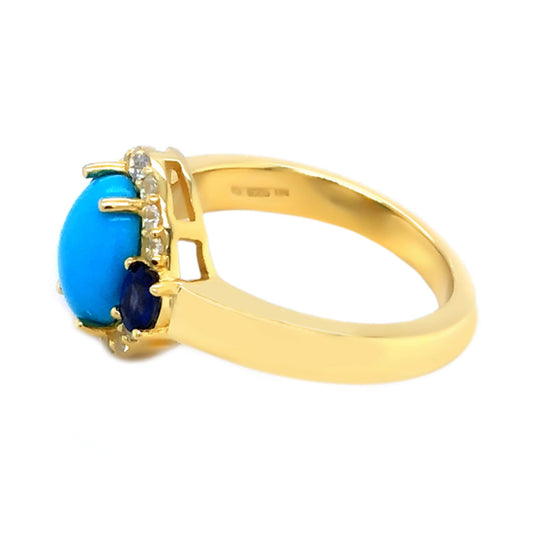 Ster;ing Silver Over Yellow Gold Plated Sleeping Beauty Turquoise Gemstone Rings