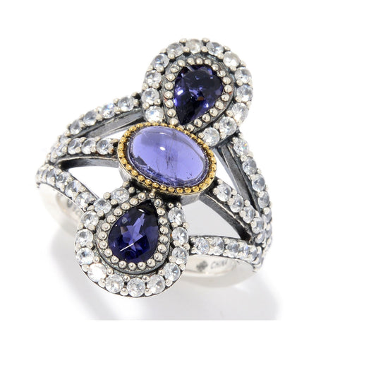 Yellow Gold Over Sterling Silver Multi Sapphire and White Natural Zircon Band RingsRegular price $125.80 USDRegular priceUnit price per$251.60 USDSale price $125.80 USDSale