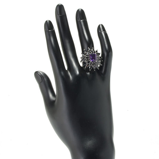 925 Sterling Silver African Amethyst and Black Spinel Ring, US8