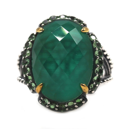 925 Sterling Silver Green Agate and Tsavorite Gemstone Solitaire Ring