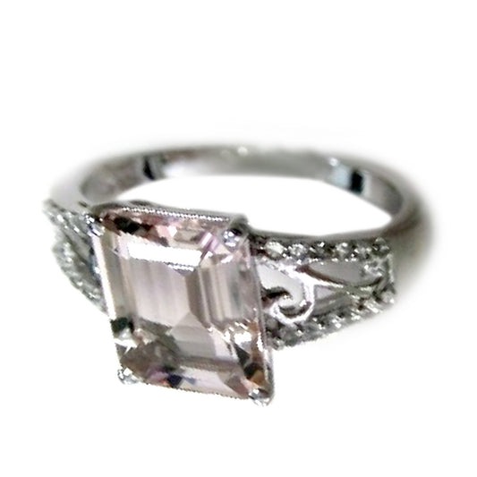 925 Sterling Silver Morganite, White Topaz Solitaire Ring