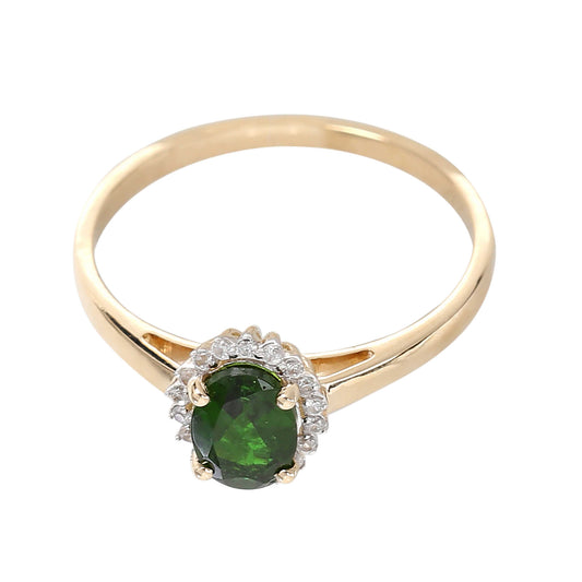 14kt Yellow Gold Chrome Diopside, White Natural Zircon Gemstone Solitaire Rings