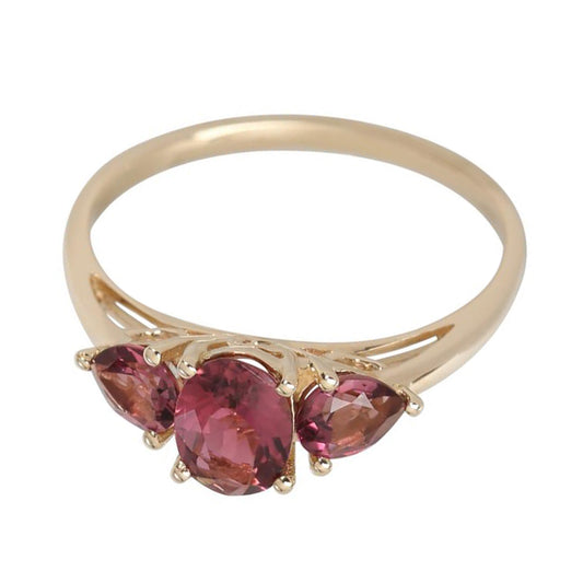 14kt Yellow Gold Pink Tourmaline 3 Stone Rings
