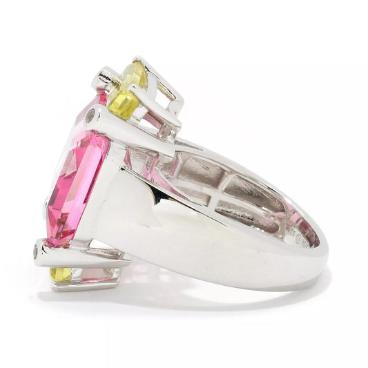 925 Sterling Silver Pink Topaz, Ouro Verde Gemstone Cluster Ring